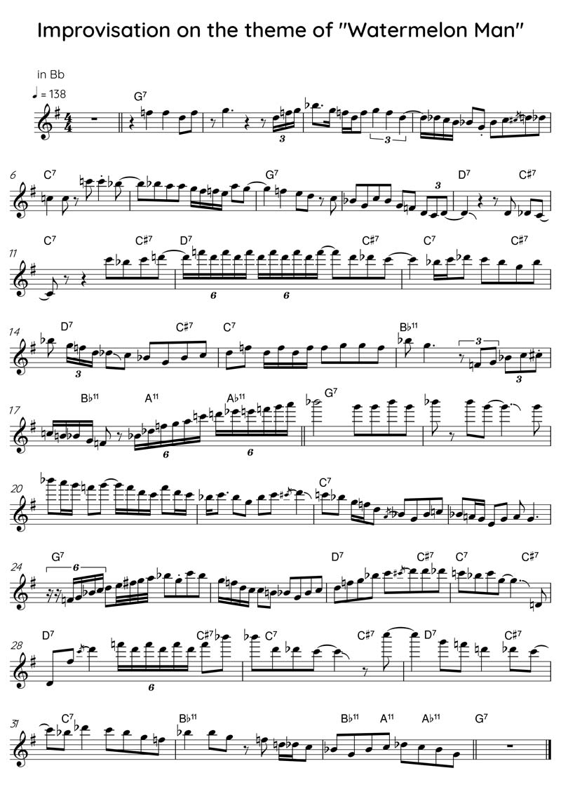Watermelon Man In C Download PDF In Bb Download PDF In Eb Download PDF Listen to Robkoo Clarii mini Improvisation Listen and Play with Backing Track To download the audio file or change the playback speed, click on the three dots on the right side of the player For the recording, I used the VG Jazz Tenor Saxophone sound libraries. You can download them here and here